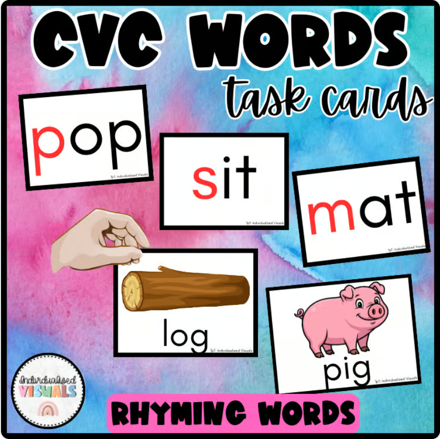 It all started with simple CVC words flashcards. I would laminate them back to back (Word on 1 side and the picture+word on the other).